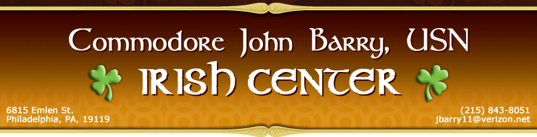 So here’s the point: if you have Irish in you, we here at the Commodore Barry Arts and Cultural Center open its arms to you. Consider the Center your own little bit of Ireland here in Philly.